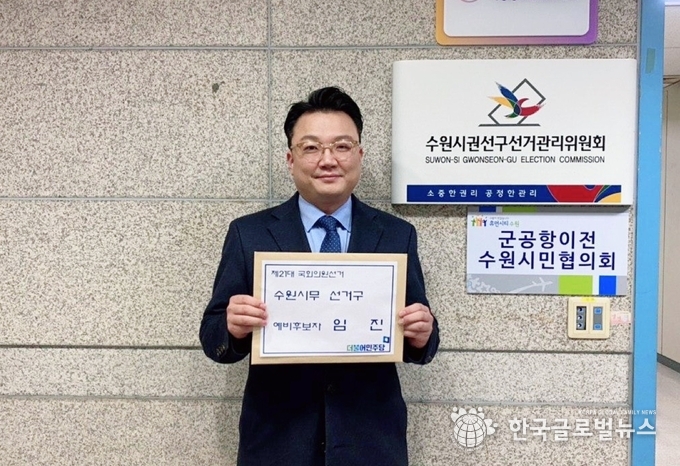 (한국글로벌뉴스 -박소연 기자) 임진 경기도시장상권진흥원 초대 원장이 25일 권선구 선관위에 21대 국회의원 선거 ‘수원시무’ 출마를 위해 더불어민주당 예비후보로 등록했다.