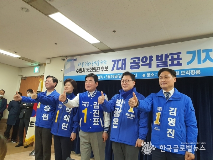 (한국글로벌뉴스 -박소연 기자) 수원시 더불어민주당 국회의원 후보들이 “시민 여러분께 희망과 힘이 되는 정치로 보답하겠다”며 이번 총선에서의 압도적 지지를 보내줄 것을 호소했다.