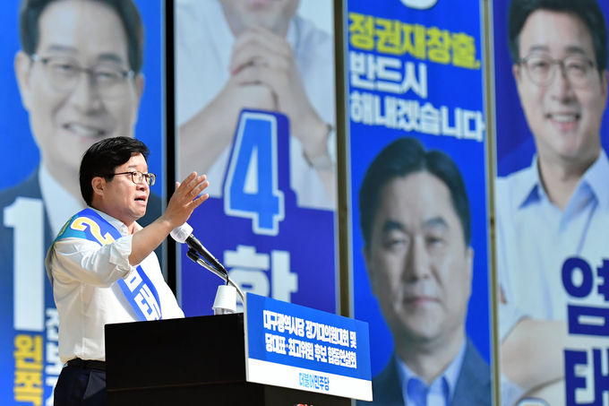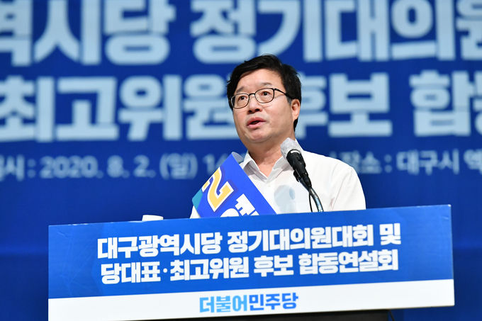 (한국글로벌뉴스 -박소연 기자) 기호 2번 염태영 더불어민주당 최고위원 후보가 2일 오후 대구광역시 북구 엑스코에서 열린 더불어민주당 대구시당 정기대의원대회 및 당 대표·최고위원 후보 합동연설회에서 정견발표를 하고 있다.