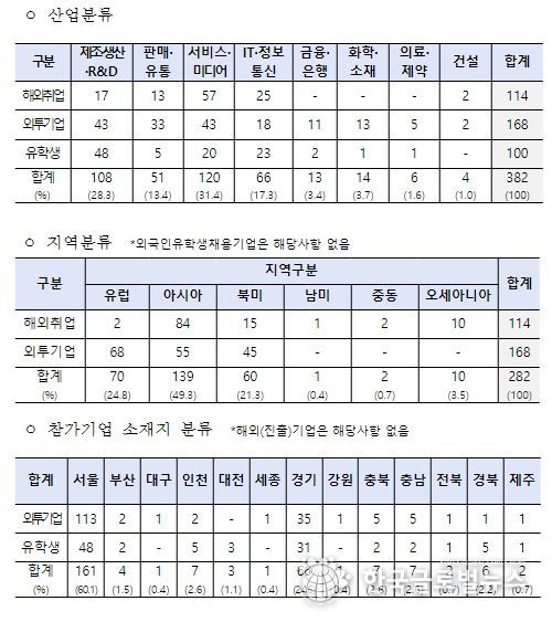이번 채용박람회는 청년 구직자에게는 좋은 일자리를, 해외기업 및 외투기업에는 우수 인재 채용의 기회를 제공하기 위해, 기존 3개의 채용박람회를 통합한 것으로 단일 박람회로는 역대 최대 규모인 382개 기업이 참가한다.
