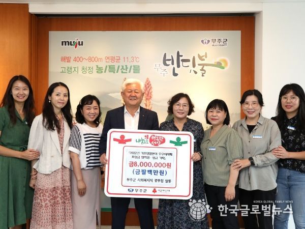 (한국글로벌뉴스 - 박소연 기자) 무주군 사회복지직 공무원들이 지역인재 육성을 위한 장학금과 이웃돕기 성금 8백만 원을 기탁해 지역사회의 귀감이 되고 있다.