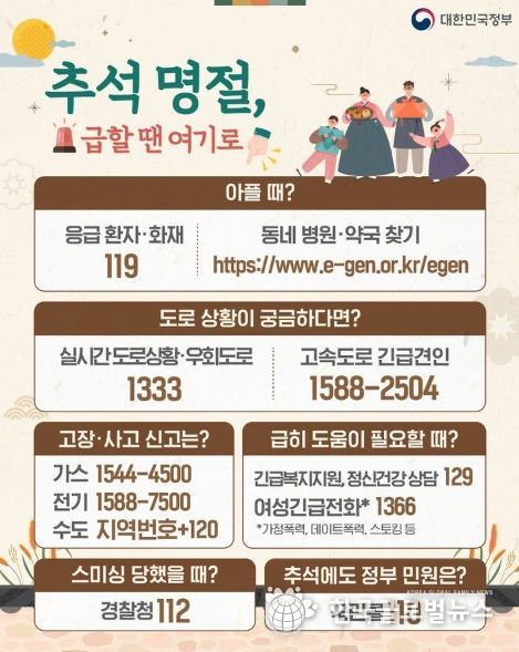 (한국글로벌뉴스 - 박경희 기자) 추석 연휴, 긴급한 일 생겼을 때 신속하게 도움받으실 수 있도록 비상연락처를 알려드립니다.