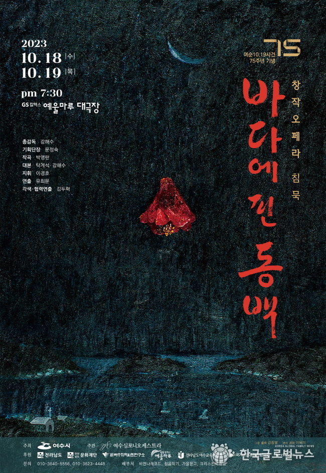 강해수 총감독은 여순 1019 창작오페라 ‘바다에 핀 동백’은 75년의 통한의 아픈 역사를 오늘에 조명하여 이유없이 죽어간 분들의 명예회복과 빠른 진상규명을 위하고 새로운 세대들에게 바른 역사관을 인식시켜주기 위해 올해 새로운 작곡과 대본으로 제작했다. 바다에 핀 동백 오페라는 다른 해와는 다르게 우리의 소리 판소리,정가,전통 국악기가 편성되어 우리만의 색다른 색갈을 만들어 보고자했다. 사뭇 관객의 반응이 기대된다. 이 한 편의 오페라가 진상규명과 명예회복에 밑거름이 되고 서로의 아픔을 토닥여주고 상생하는데 기여하길 바래본다.