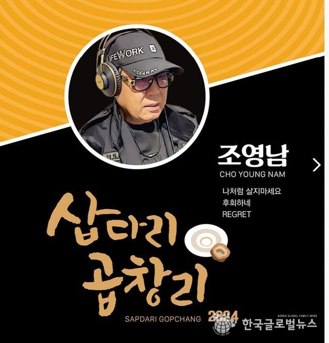 (한국글로벌뉴스 - 박경희 기자) ‘딜라일라’로 한국의 팝음악의 문을 연 한국팝음악 창시자 조영남이 10월13일 멜론을 시작으로 신곡을 발표했다. 1970년대 후반에 발표했던 삽다리의 2024년 개정판 '삽다리곱창리'를 필두로 '나처럼 살지마세요' '후회하네'등 신곡음원 7곡을 발표하고 활발한 70대 후반 가수의 본업으로 돌아왔다.