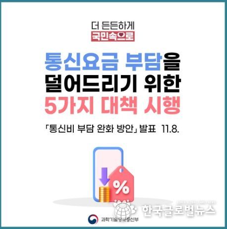 (한국글로벌뉴스 - 박경희 기자) 통신요금 부담을 덜어드리기 위한 5가지 대책을 시행합니다.