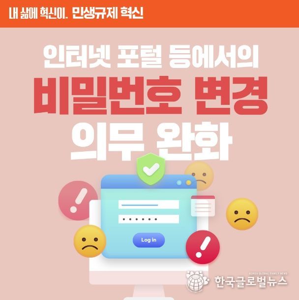 인터넷 포털 등에서의 비밀번호 변경 의무 완화합니다.