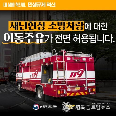 (한국글로벌뉴스 - 박경희 기자) 재난현장 소방차량에 대한 이동주유가 전면 허용됩니다.