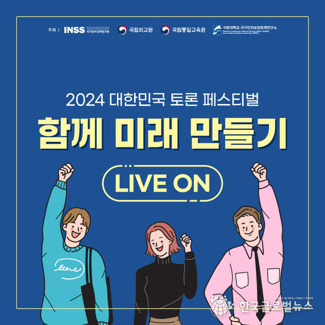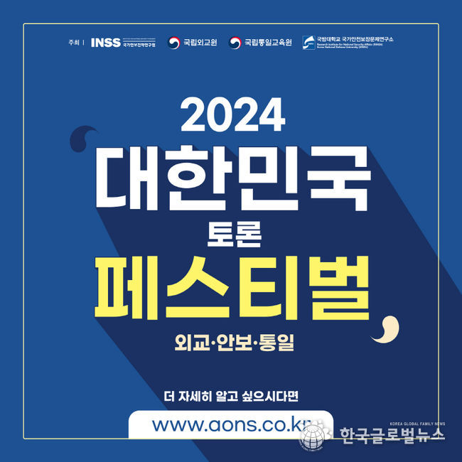 (한국글로벌뉴스 - 박경희 기자) 국가안보전략연구원(원장 한석희)을 포함한 국립외교원, 통일교육원, 국방대학교 4개 국책연구기관은 오는 2024년 1월 2일 참가자 모집을 시작으로 1월26일까지 ‘외교·안보·통일을 주제로 2024 대한민국 토론 페스티벌’을 개최한다.