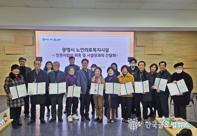(한국글로벌뉴스 - 박소연 기자) 광명시는 지난 5일 시청 중회의실에서 노인요양시설 입소 어르신의 인권보호와 학대 예방 활동을 위해 인권지킴이 11명을 위촉하고 관련 시설장과의 간담회를 열었다.