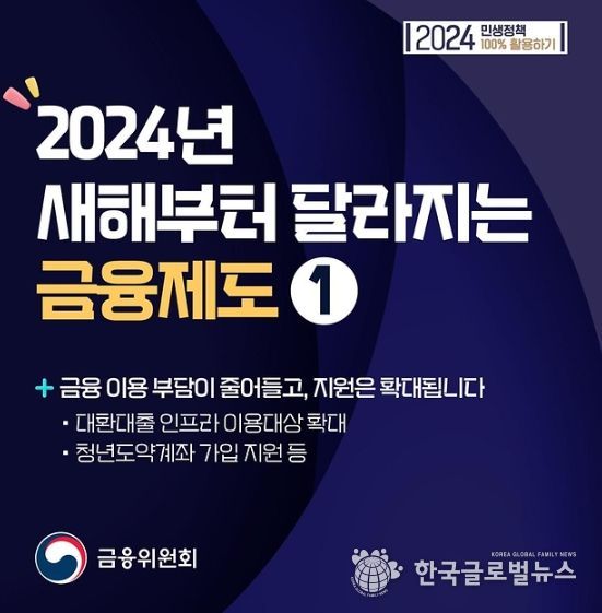 (한국글로벌뉴스 - 박경희 기자) 2024년 새해부터 달라지는 금융제도 '1'