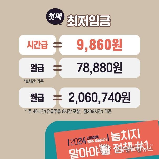 시급 : 9,860원, 일급 : 78,880원, 월급 : 2,060,740원