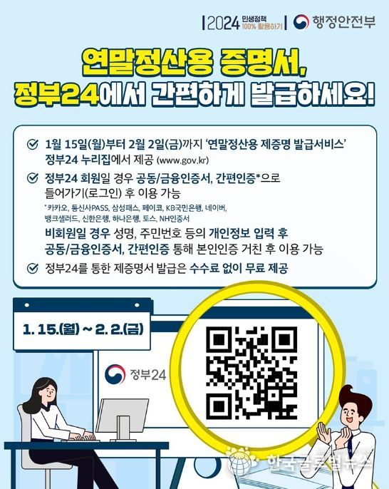 (한국글로벌뉴스 - 박경희 기자) 연말정산용 증명서, 정부24에서 무료로 간편하게 발급하세요!