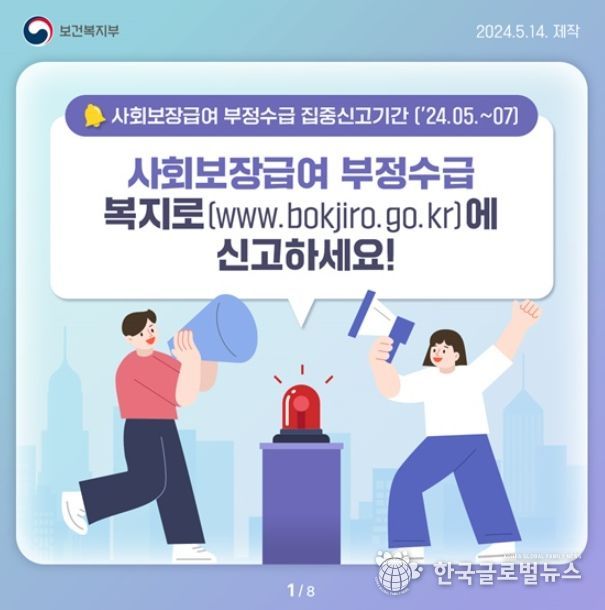 (한국글로벌뉴스 - 박경희 기자) 사회보장급여 부정수급 복지로에 신고하세요!