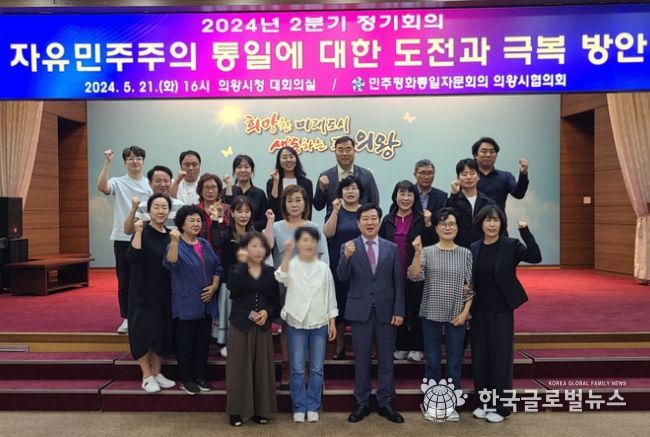 (한국글로벌뉴스 - 박소연 기자) 민주평화통일자문회의 의왕시협의회는 21일 의왕시청 대회의실에서 자문위원, 탈북민 멘티 등 40여 명이 참석한 가운데‘2024년 2분기 정기회의’를 개최했다.
