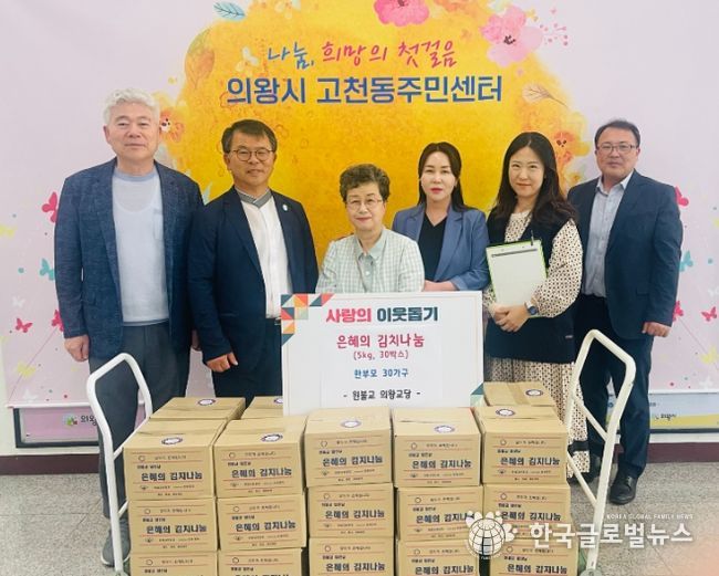 (한국글로벌뉴스 - 박소연 기자) 의왕시 고천동 소재 원불교 의왕교당은 지난 22일 한부모가정에 전달해 달라며 김치(5kg) 30상자를 고천동주민센터에 기탁했다.