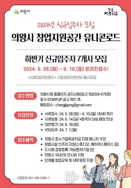 (한국글로벌뉴스 - 박소연 기자) 의왕시는 예비‧초기창업자를 지원하기 위해 만든 단계적 창업지원공간 유니콘로드에서 2024년 하반기 신규 입주자를 모집한다고 밝혔다.