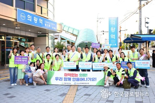 (한국글로벌뉴스 - 박소연 기자) 의왕시보건소는 26일 의왕역 일원에서 청소년 범죄예방 의왕지구위원회와 함께 ‘마약 없는 건강 의왕!’을 주제로 불법 마약류 퇴치 합동 캠페인을 진행했다.