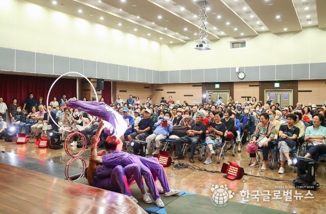 (한국글로벌뉴스 - 박소연 기자) 의왕시 아름채노인복지관은 지난 26일 내손2동주민센터 대강당에서 ‘신나는 예술여행, 동춘서커스’ 공연을 개최했다.