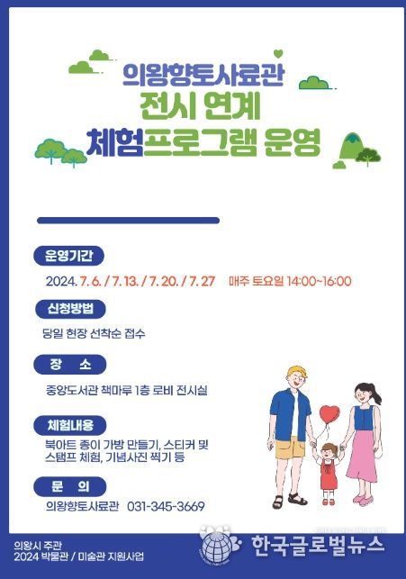 (한국글로벌뉴스 - 박소연 기자) 의왕향토사료관은 7월 매주 토요일 오후 2시부터 4시까지 ‘조선시대 한글 번역본으로 보는 삼강오륜 이야기’ 전시의 연계 체험 프로그램을 운영한다고 4일 밝혔다.