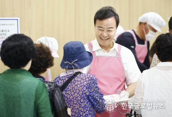 (한국글로벌뉴스 - 박소연 기자) 김성제 의왕시장이 15일 초복을 맞아 아름채 노인복지관 경로식당 이용 어르신들을 위한 배식 봉사활동을 펼쳤다.