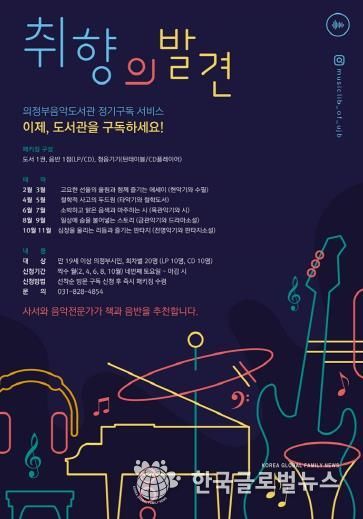 (한국글로벌뉴스 - 박소연 기자) 의정부음악도서관은 자신의 의외의 취향을 발견할 수 있도록 악기별 음반과 장르별 도서를 추천하는 정기구독 서비스 ‘취향의 발견’을 운영한다.