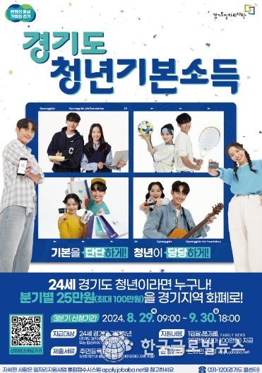 (한국글로벌뉴스 - 박소연 기자) 경기도 의왕시는 오는 8월 29일부터 9월 30일까지 2024년 3분기 청년기본소득 신청을 받는다고 밝혔다.