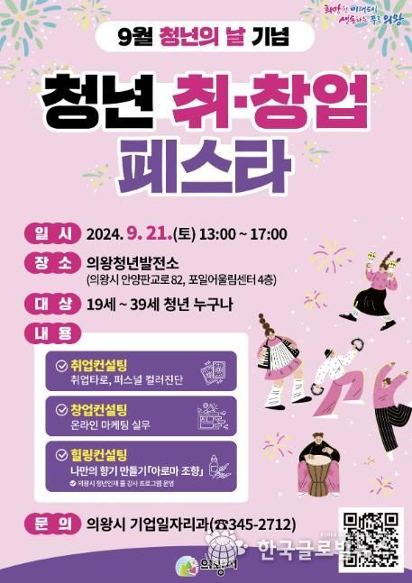 (한국글로벌뉴스 - 박소연 기자) 의왕시가 오는 9월 21일 청년의 날을 기념해 의왕청년발전소에서 ‘청년 취·창업 페스타’를 개최한다.