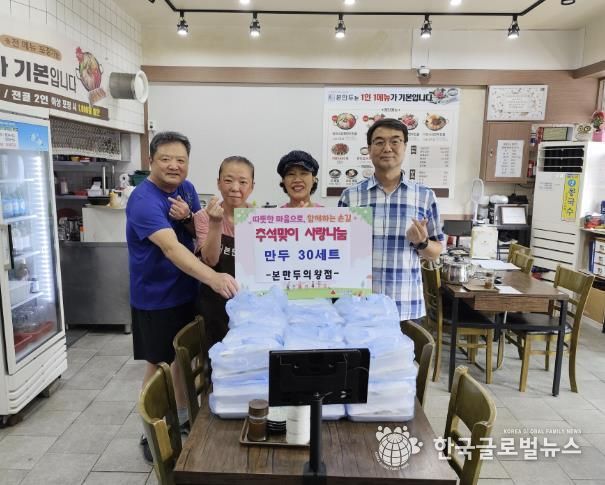 (한국글로벌뉴스 - 박소연 기자) 의왕시 부곡동에 위치한 본만두 의왕점은 9일 추석 명절을 맞아 부곡동 주민센터에 만두 30세트를 기탁했다.