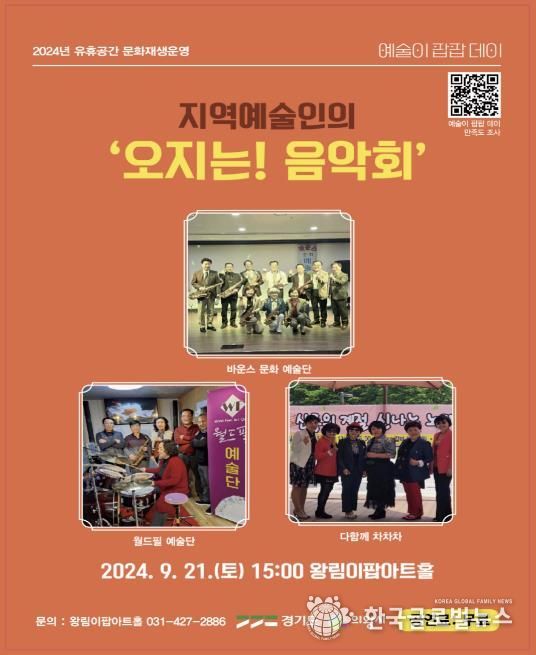 (한국글로벌뉴스 - 박소연 기자) 의왕시는 오는 9월 21일 오후 3시 왕림이팝아트홀에서 ‘예술이 팝팝 데이’ 시즌2 사업의 일환으로 ‘오지는! 음악회’를 선보인다.
