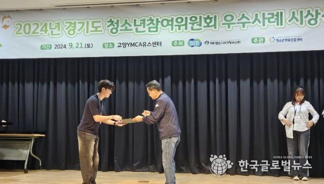 (한국글로벌뉴스 - 박소연 기자) 의왕시청소년수련관에서 위탁 운영하는 의왕시청소년참여위원회가 지난 21일 ‘경기도 청소년참여위원회 우수사례 공모전’ 활동사례 부문에서 경기도청소년활동진흥센터장상을 수상했다고 밝혔다.