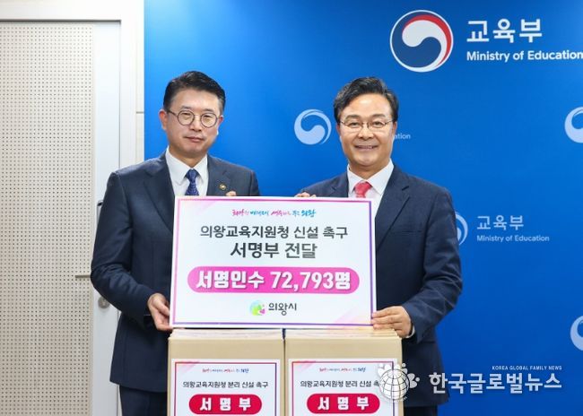 이에 의왕시는 지난해 4월부터 7월까지 의왕교육지원청 신설을 위한 시민 서명운동을 실시해 총 72,793명이 서명운동에 동참했다. 김 시장은 시민들의 염원을 담은 서명부를 지난해 8월 임태희 경기도교육감을 만나 직접 전달했으며, 이어 지난해 11월에는 장상윤 교육부 차관을 만나 서명부를 전달하며 의왕교육지원청 신설을 강력히 요구한 바 있다.