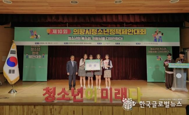 (한국글로벌뉴스 - 박소연 기자) 의왕시청소년재단 포일청소년문화의집 청소년운영위원회 ‘담비’는 지난 19일 개최한 제10회 의왕시청소년정책제안대회에서 대상(의왕시장상)을 수상했다.