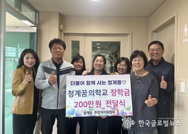최승규 청계동 주민자치위원장은 “이번 사랑의 장학금 지원이 학생과 학부모들에게 조금이나마 힘이 되기를 바라며, 앞으로도 미래의 꿈나무들을 위한 지원과 활동을 이어가겠다”고 전했다.