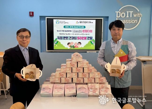 (한국글로벌뉴스 - 박소연 기자) 의왕시청소년재단 산하 포일청소년문화의집은 지난 24일 청소년이 직접 만든 어르신 간식 모나카 견과칩 50인분을 의왕시사랑채노인복지관에 전달했다.
