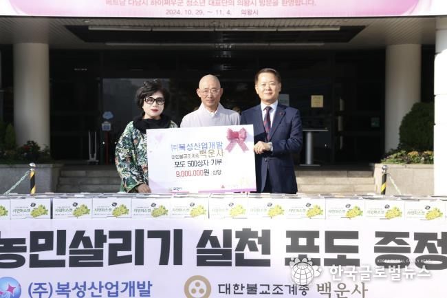 (한국글로벌뉴스 - 박소연 기자) 의왕시는 10월 31일 대한불교조계종 백운사와 ㈜복성산업개발에서 저소득층 및 사회복지시설 지원을 위해 샤인머스켓 500상자(9백만 원 상당)를 기탁했다고 밝혔다.