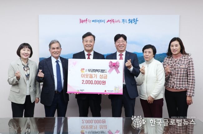 (한국글로벌뉴스 - 박소연 기자) 의왕시는 지난 7일 사단법인 무궁화복지월드(단장 정덕호)에서 관내 취약계층을 위해 사용해달라며 성금 200만 원을 기부했다고 밝혔다.