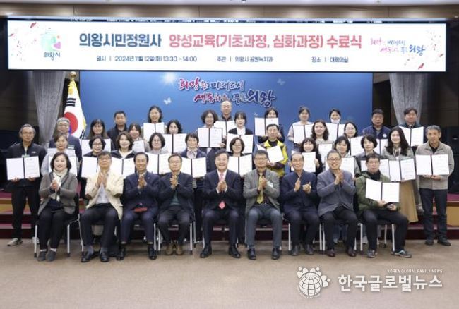 (한국글로벌뉴스 - 박소연 기자) 의왕시는 12일 시청 대회의실에서 의왕시민정원사 기초과정과 심화과정의 수료식을 개최했다고 밝혔다.