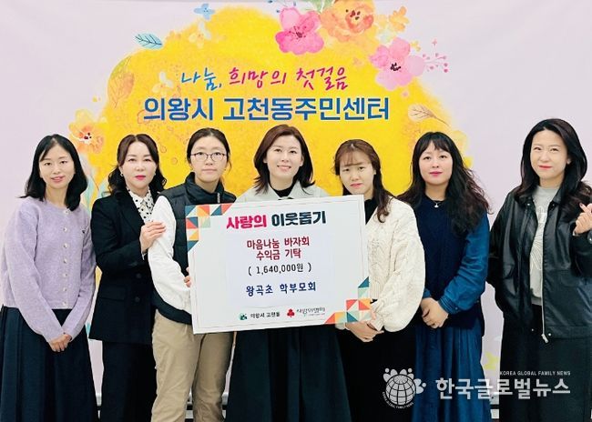 (한국글로벌뉴스 - 박소연 기자) 의왕시 왕곡초등학교 학부모회는 13일 바자회 수익금 1,640,000원을 어려운 이웃을 돕는 데 사용해달라며 고천동 주민센터에 기탁했다.
