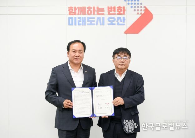(한국글로벌뉴스 - 박소연 기자) 오산시는 13일 시청 집무실에서 오산대학교와 지역사회 발전 및 지산학 협력강화를 위한 공유·협업 업무협약을 체결했다.