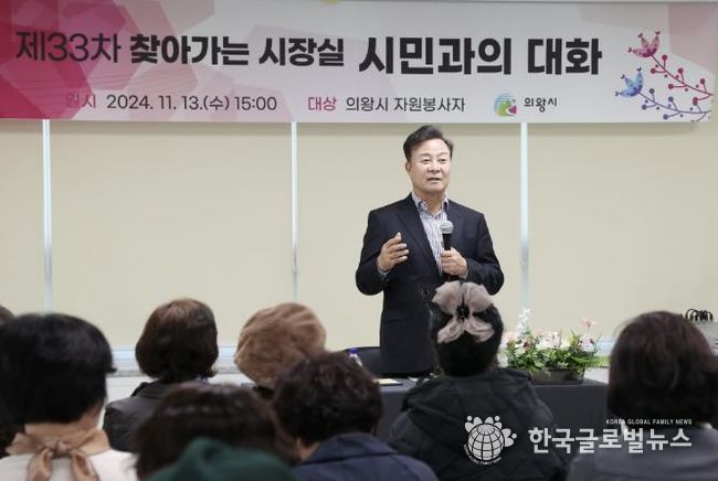 (한국글로벌뉴스 - 박소연 기자) 의왕시는 13일 고천동 주민센터 자원봉사센터 교육장에서 ‘제33차 찾아가는 시장실’을 개최해 자원봉사자들과 소통의 장을 마련했다.
