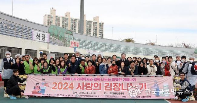 (한국글로벌뉴스 - 박소연 기자) 오산도시공사는 (사)자연보호 중앙연맹 경기도 오산시협의회와 함께 11월 19일, 오산종합운동장에서 ‘2024 사랑의 김장나누기’ 행사를 전개했다고 밝혔다.