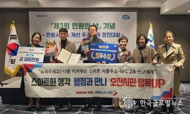 (한국글로벌뉴스 - 박소연 기자) 오산시가 22일 경기도에서 개최한 2024년 민원서비스 개선 우수사례 경진대회에서 최우수상을 받았다.