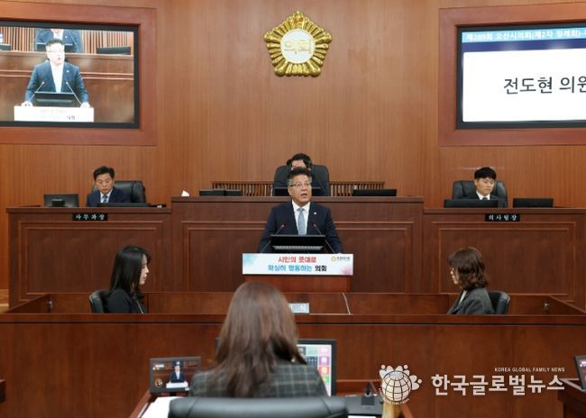 (한국글로벌뉴스 - 박소연 기자) 오산시의회 전도현 의원은 지난 25일 열린 제289회 오산시의회 제2차 정례회 본회의에서‘지방재정 신속 집행의 문제점’이라는 주제로 7분 자유발언을 했다.