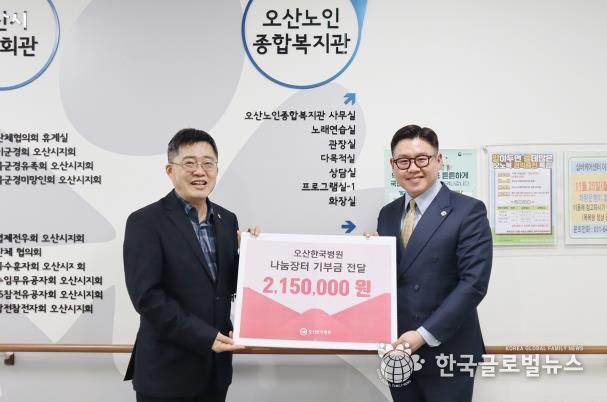 (한국글로벌뉴스 - 박소연 기자) 오산노인종합복지관은 11월 25일 오산한국병원으로부터 후원금 215만원을 전달받았다.