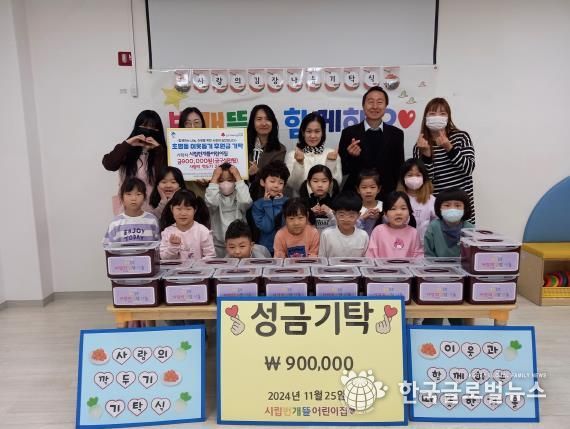 김성주 초평동장은 “추운 겨울 관내 취약계층을 위해 따뜻한 나눔을 실천해 주신 어린이집 원생과 교직원, 학부모님께 감사드린다”며 “아이들의 순수하고 따뜻한 마음이 담긴 성금과 사랑의 깍두기는 필요한 이웃에게 잘 전달하도록 하겠다”고 밝혔다.
