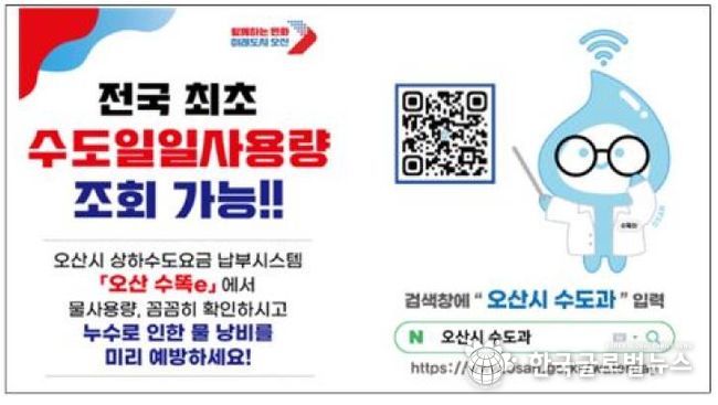 시민들은 오산시 수도과 홈페이지 「오산 수똑e」를 통해 수도사용량을 실시간으로 조회할 수 있다. 일일 사용량데이터를 통해 누수 징후나 계량기 이상 여부를 조기에 발견할 수 있어 이로 인한 금전적 피해를 사전에 방지할 수 있고 신속한 대응이 가능해 시민들 사이에서 호평이 이어지고 있다.
