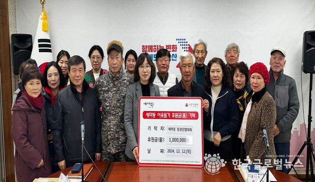 (한국글로벌뉴스 - 박소연 기자) 오산시 세마동은 통장단 협의회에서 관내 어려운 이웃을 위한 후원금 1백만 원을 기탁했다고 12일 전했다.