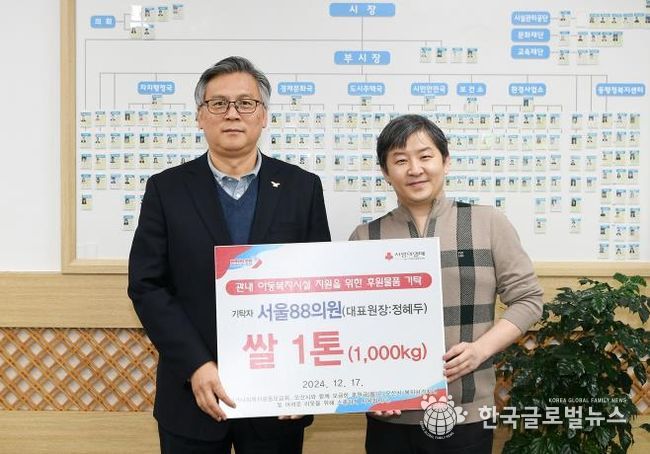 (한국글로벌뉴스 - 박소연 기자) 오산시는 17일 서울88의원에서 쌀 1톤을 오산시 관내 아동복지시설 38개소에 기탁했다고 밝혔다.
