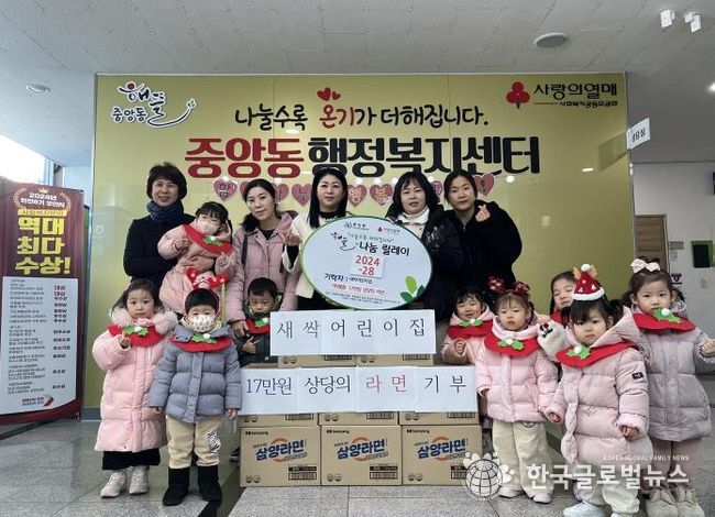 (한국글로벌뉴스 - 박소연 기자) 오산시 중앙동은 지난 18일 부산동에 위치한 새싹어린이집이 관내 취약계층을 위해 17만 원 상당의 라면을 기탁했다고 전했다.