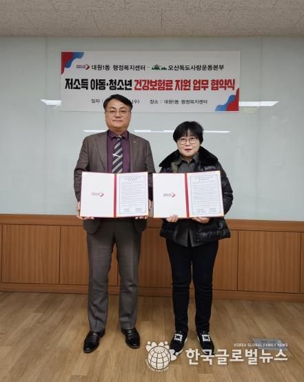 (한국글로벌뉴스 - 박소연 기자) 오산시 대원1동은 지난 18일 오산독도사랑운동본부와 관내 저소득 아동·청소년 보험(질병, 상해)료 지원을 위한 업무협약을 체결했다.